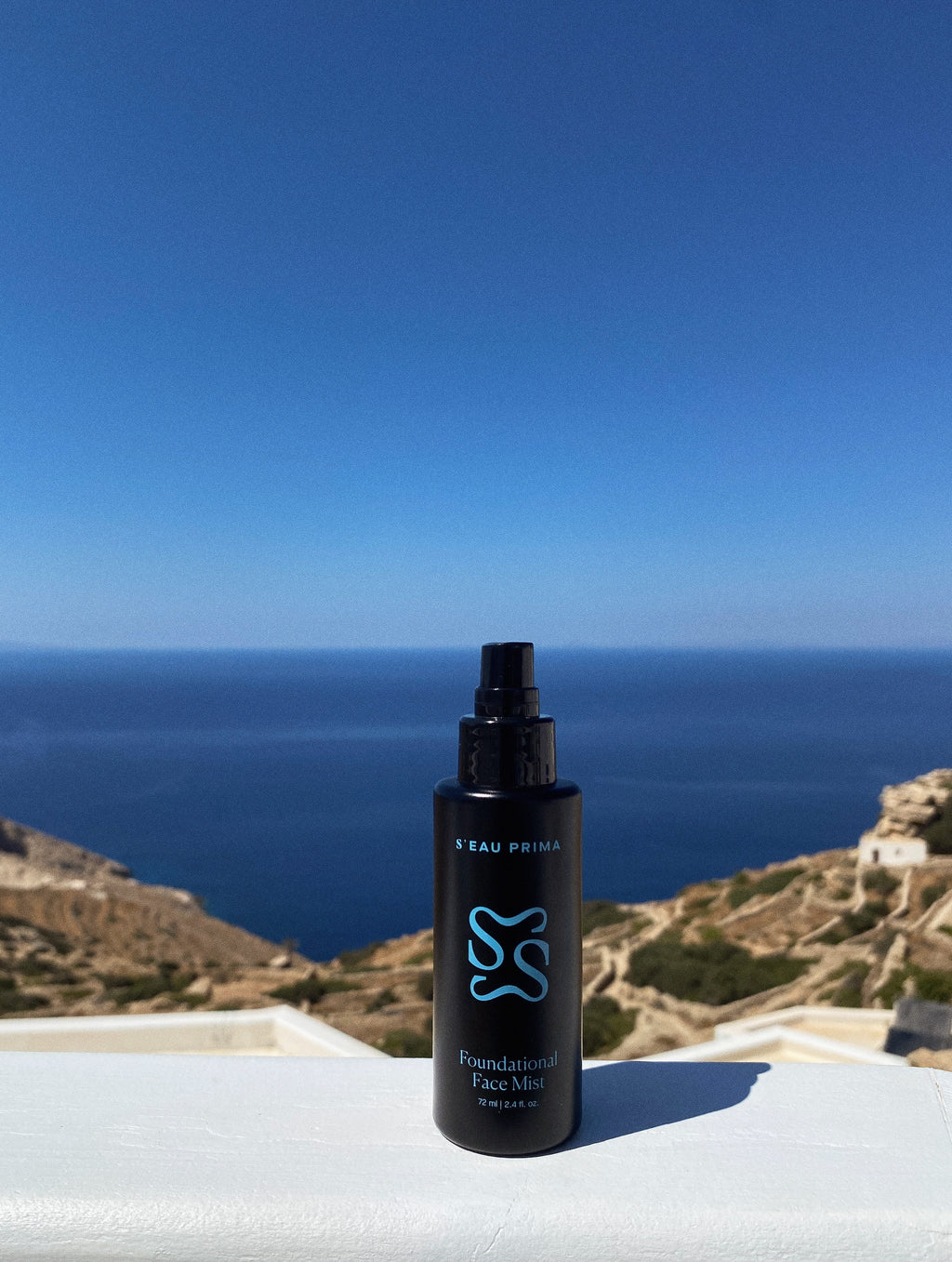 Experience S'eau Prima's bestselling Foundational Face Mist in both its full ritual size and TSA-friendly Jet Set companion paired with a complimentary S'eau Prima essentials clutch.